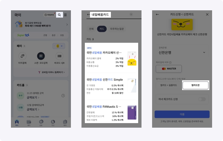 회원가입 및 로그인 > 내일배움카드 검색 > 앱카드만 발급